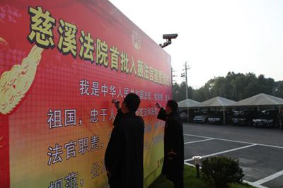 “我是中华人民共和国法官,我宣誓:忠于祖国,忠于人民,忠于宪法和法律,……”12月16日上午8时15分,我院首批员额法官在院党组书记、代院长夏文俊的领誓下,身着法袍,面向国旗,举起右拳,庄严宣誓。宣誓后,全体员额法官在宣誓牌上郑重签名。此次法官宣誓仪式旨在增强员额法官的责任担当意识,同时也标志着我院司法体制改革工作迈出关键一步。 法官宣誓仪式后,全体员额法官前往参观宁波市法纪教育基地——黄湖监狱,集中进行廉政警示教育活动。 (沈桑桑 车建国) |